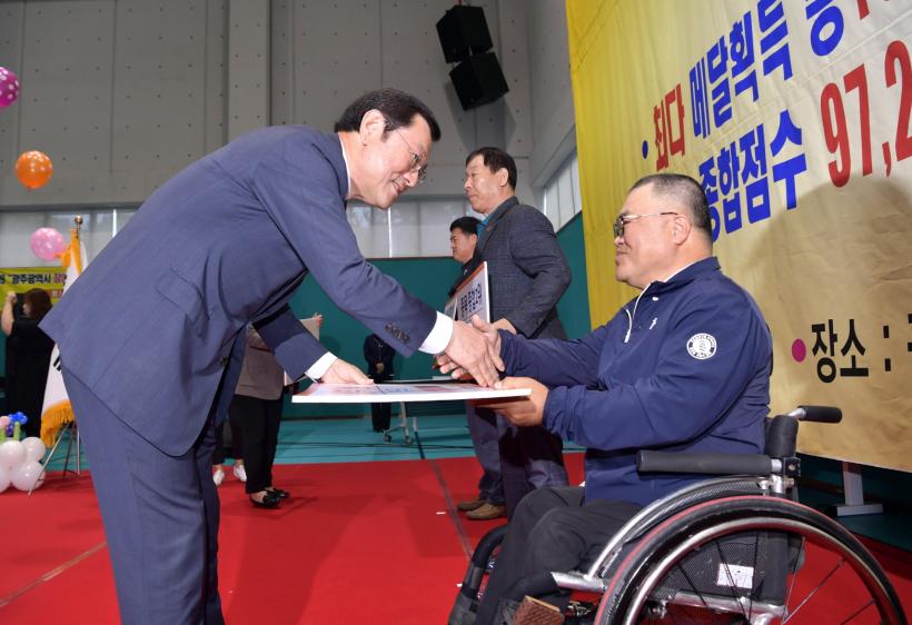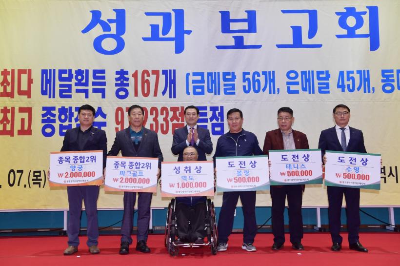 [°ø°£´º½º = ±è´ë¿µ±âÀÚ] Á¦39ȸ Àü±¹Àå¾ÖÀÎüÀ°´ëȸ ±¤ÁÖ±¤¿ª½Ã¼±¼ö´ÜÀº 7ÀÏ ±¤ÁÖ½ÃÀå¾ÖÀα¹¹ÎüÀ°¼¾ÅÍ¿¡¼ À̿뼷 ½ÃÀå, ±èµ¿Âù ±¤ÁÖ½ÃÀÇȸ ÀÇÀå, ¿À½ÂÇö ±¤Áֽñ³À°Ã» ºÎ±³À°°¨, ¼±¼ö´Ü 400¿© ¸íÀÌ Âü¼®ÇÑ °¡¿îµ¥ ¡®¼º°úº¸°íȸ¡¯¸¦ °³ÃÖÇß´Ù.