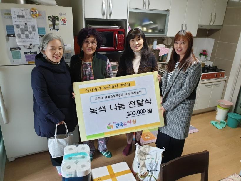 ¶ÇÇÑ ¡®¾Æ³ª¹Ù´Ù ³ì»öÀåÅÍ¡¯¸¦ ÅëÇØ ¾òÀº ¼öÀͱÝ(329,000¿ø)Àº 11¿ù 15ÀÏ(±Ý) °Ç±¹µ¿ Áֹμ¾ÅÍ¿Í ¿¬°èÇÏ¿© Áö¿ª»çȸ¿¡ ¾î·Á¿òÀÌ ÀÖ´Â ºÐ¿¡°Ô Àü´ÞÇÏ¿´´Ù. À̸¦ ÅëÇØ À¯¾ÆµéÀÌ ³ª´®À» ÀÌÇØÇÏ°í ½ÇõÇÏ´Â ±â»ÝÀ» ´À³¥ ¼ö ÀÖ¾ú´Ù.