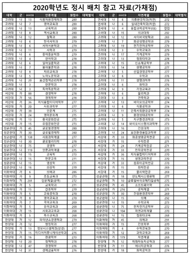 ¿¬¡¤°í´ë´Â 300Á¡ ±âÁØ Áö¿ø °¡´É Á¡¼ö´Â Àι®°è¿ 276Á¡ ³»¿Ü, ÀÚ¿¬°è¿ 272Á¡ ³»¿Ü°¡ µÉ °ÍÀ¸·Î º¸À̸ç, »óÀ§±Ç ÇаúÀÇ °æ¿ì Àι®Àº 286Á¡ ³»¿Ü, ÀÚ¿¬Àº 292Á¡ Á¤µµ¿¡¼ Áö¿ø¼±ÀÌ Çü¼ºµÉ °ÍÀ¸·Î º¸ÀδÙ.