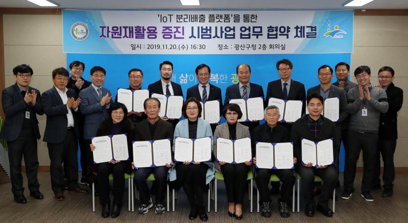 [°ø°£´º½º = ±è¿îö±âÀÚ] ±¤»ê±¸(±¸Ã»Àå ±è»ïÈ£)°¡ Áö³ 20ÀÏ ±¸Ã»¿¡¼ ¾ÆÆÄÆ® ÀÔÁÖÀÚ ´ëÇ¥µé, ±¤ÁÖâÁ¶°æÁ¦Çõ½Å¼¾ÅÍ, ¿ÀÀ̽ºÅÍ¿¡À̺í, À̸¶Æ® ±¤»êÁ¡ µî°ú ¡®IoT ºÐ¸®¹èÃâ Ç÷§ÆûÀ» ÅëÇÑ ÀÚ¿ø¹èȰ¿ë ÁõÁø ½Ã¹ü»ç¾÷¿¡ ´ëÇÑ ¾÷¹«Çù¾à¡¯À» ¸Î¾ú´Ù.