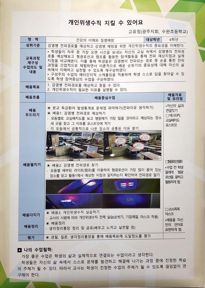 ±¤ÁÖº¸°Ç±³»çȸ ÀÓÀÌÈ È¸ÀåÀº ¡°°íÀ¯Á¤ ¼±»ý´ÔÀº 2012³â º¸°Ç±³»ç·Î ÀÓ¿ëµÈ ÀÌÈÄ Çлý »î Ç÷¯½º Ãʵ±³À°¿¬±¸È¸(2016³â), ºñÁÖ¾ó¾ÅÅ· º¸°Ç¼ö¾÷¿¬±¸È¸(2017³â), ¹Ìµð¾î¸®ÅÍ·¯½Ã ¼º±³À°¿¬±¸È¸(2018³â), ºÏ±Ø¼º(ºÏ¸®µùÀ¸·Î ¿Â »îÀ» °¡²Ù´Â ¼º±³À°¿¬±¸È¸, 2019³â)µî º¸°Ç±³À°ÀÇ Áú Çâ»óÀ» À§ÇØ ´Ù¾çÇÑ ÁÖÁ¦·Î Á¢±ÙÇØ º¸°íÀÚ ²÷ÀÓ¾øÀÌ ¿¬±¸ÇÏ°í ³ë·ÂÇÏ´Â ±³»ç·Î µ¿·á º¸°Ç¼±»ý´Ôµé »çÀÌ¿¡¼µµ ¼ö¾÷ÀÇ ¸àÅä ¿ªÇÒÀ» ÁÖµµÇϰí ÀÖ´Ù¡±¸ç ¡°¿ì¸® ¾ÆÀ̵éÀÇ °Ç°¿ª·®À» ³ôÀ̱â À§ÇÏ¿© »ç¸í°¨À» °®°í Ȱµ¿ÇϽô ¼±»ý´Ô°ú ÇÔ²² ¹è¿òÀ» ³ª´ ¼ö ÀÖ¾î¼ µçµçÇϰí ÀÚ¶û½º·´´Ù¡±°í ¹àÇû´Ù.
