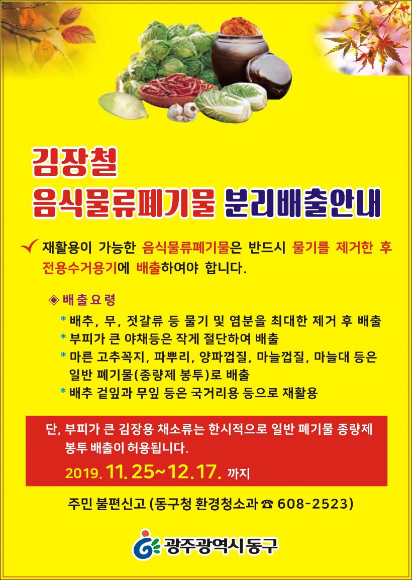 µ¿±¸´Â 25ÀϺÎÅÍ ´ÙÀ½´Þ 18ÀϱîÁö¸¦ ±èÀåö ´ëºñ À½½Ä¹°·ù Æó±â¹° ÁýÁß¼ö°Å±â°£À¸·Î Á¤Çϰí, ÀýÀÓ¹èÃß³ª ¾ç³äÀÌ ¹¯Àº ±èÀåä¼Ò µîÀÇ À½½Ä¹° ¾²·¹±â¸¦ ´ãÀº Á¾·®Á¦ºÀÅõ¸¦ ÁýÁß ¼ö°ÅÇÒ ¿¹Á¤ÀÌ´Ù.