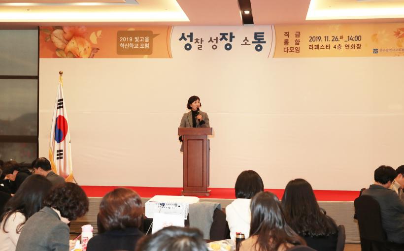 [°ø°£´º½º = ±è¼ö±Ù±âÀÚ] ±¤ÁÖ±¤¿ª½Ã±³À°Ã»(±³À°°¨ ÀåÈÖ±¹)ÀÌ Áö³ 11¿ù 26ÀÏ(È) ¡®ºû°íÀ»Çõ½ÅÇб³ Á÷±Þ ÅëÇÕ ´Ù¸ðÀÓ¡¯À» ¶óÆä½ºÅ¸ ¿¬È¸Àå¿¡¼ °³ÃÖÇß´Ù. À̹ø Çà»ç´Â ¡®2019 ºû°íÀ»Çõ½ÅÇб³ Æ÷·³¡¯ÀÇ Ã¹ ¼ø¼·Î ±³Àå, ±³°¨, ±³»ç, ÇàÁ¤½ÇÀå, ±³¹«½Ç¹«»ç µî ºû°íÀ»Çõ½ÅÇб³ÀÇ ¿î¿µÁÖü 350¸íÀÌ Âü¼®Çß´Ù.
