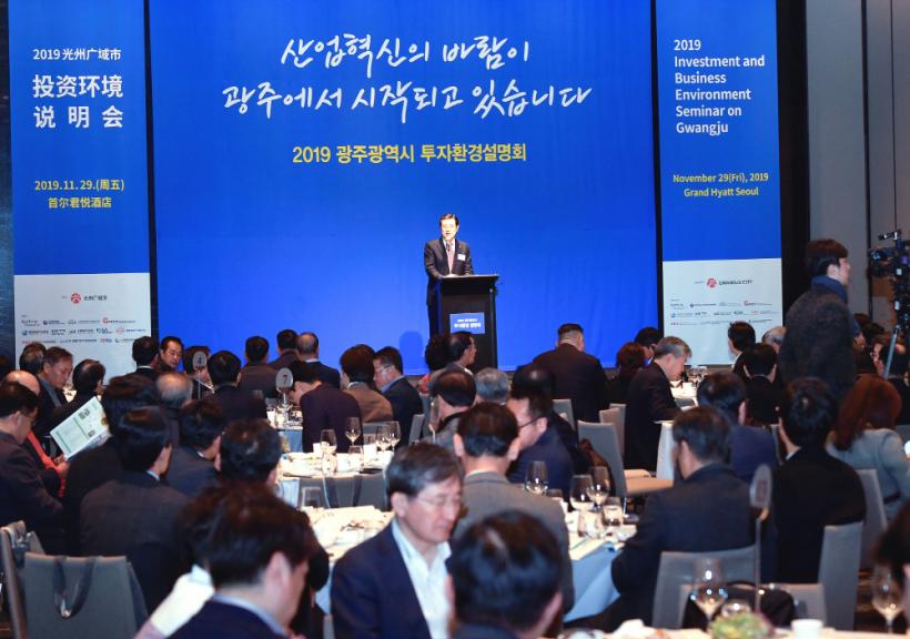 29ÀÏ ¼¿ï ±×·£µå ÇÏ¾æÆ® È£ÅÚ¿¡¼ ¿¸° À̹ø ¼³¸íȸ´Â ±¤Áֽð¡ ¿ªÁ¡ÀûÀ¸·Î ÃßÁøÇϰí ÀÖ´Â ÀΰøÁö´É»ê¾÷, ģȯ°æÀÚµ¿Â÷, ½º¸¶Æ®¿¡³ÊÁö, °ø±â»ê¾÷ µî ±¤Áֽà »ê¾÷À°¼º ÇÁ·ÎÁ§Æ®¿Í ÅõÀÚȯ°æ µîÀ» ¼³¸íÇÏ°í ±â¾÷µéÀÇ ÅõÀÚ¸¦ À̲ø¾î³»±â À§ÇØ ¸¶·ÃµÆ´Ù.