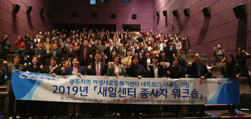 [°ø°£´º½º = ±è´ë¿µ±âÀÚ] ±¤ÁÖ±¤¿ª½Ã Àϰ¡Á¤¾ç¸³Áö¿øº»ºÎ ¿©¼º»õ·ÎÀÏÇϱ⼾ÅÍ´Â Áö³ 11¿ù 29ÀÏ CGV±¤ÁÖÅ͹̳ÎÁ¡¿¡¼ Á¾»çÀÚ, ¿©¼ºÄ£ÈÀÏÃ̱â¾÷, ±¸Á÷ÀÚ µî 150¿©¸íÀÌ Âü¼®ÇÑ °¡¿îµ¥ ¡®»õÀϼ¾ÅÍ Á¾»çÀÚ ¿öÅ©¼ó¡¯À» ½Ç½ÃÇß´Ù.