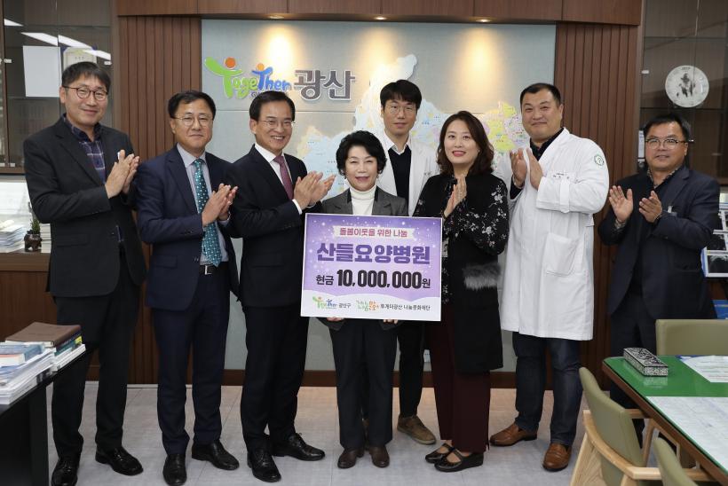 [°ø°£´º½º = ±è¿îö±âÀÚ] ±¤»ê±¸ »êµé¿ä¾çº´¿ø(º´¿øÀå Á¤¼ºÀ±)ÀÌ 10ÀÏ °Ü¿ï º¹Áö»ç°¢Áö´ë µ¹º½ ÀÌ¿ôÀ» À§ÇØ ½á´Þ¶ó¸ç ±¤»ê±¸¸¦ ÅëÇØ Åõ°Ô´õ±¤»ê ³ª´®¹®ÈÀç´Ü¿¡ ¸Å³â 1,000¸¸¿ø¾¿ 5³â°£ ÃÑ 5,000¸¸¿øÀ» ±âºÎÇÒ °ÍÀ» ¾à¼ÓÇß´Ù.