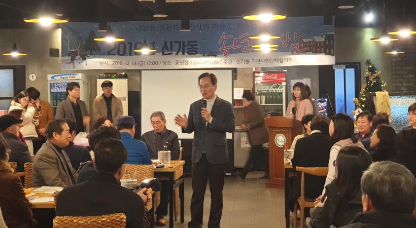 [°ø°£´º½º = ±è¿îö±âÀÚ] Áö³ 13ÀÏ ±¤»ê±¸ ½Å°¡µ¿ »çȸ´ÜüÀåÇùÀÇȸ(ȸÀå ±è±â¼ø)°¡ µ¿ÀÇ ÇÑ ½Ä´ç¿¡¼ 2019³â Ȱµ¿À» °øÀ¯ÇÏ´Â ¡®½Å°¡µ¿ ¼Û³âÀÇ ¹ã¡¯ Çà»ç¸¦ ¿°í, Àú¼ÒµæÃþ ÀÚ³àµé¿¡°Ô ÀåÇбÝÀ» Àü´ÞÇÏ´Â µî ³ª´®°ú °ø°¨ÀÇ ¿¬¸»À» ¸Â¾Ò´Ù. ÀÌ ÀÖ´Â ¿¬¸»À» ¸¸µé¾ú´Ù.