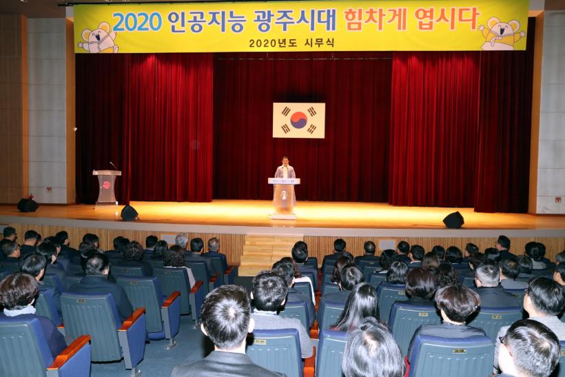 [°ø°£´º½º = ±è´ë¿µ±âÀÚ] À̿뼷 ±¤ÁÖ±¤¿ª½ÃÀåÀÌ 2020³â ½Ã¹«½Ä¿¡¼ Æò¼Ò Áñ°Ü Àд 4ÆíÀÇ ½Ã¿Í 1°³ÀÇ °í»ç¼º¾î¸¦ ÀοëÇØ°¡¸ç ½ÃÁ¤ ÃßÁø¿¡ ´ëÇÑ °¢¿À¿Í Àڽۨ, °øÁ÷ÀÚµéÀÇ ÀÚ¼¼¿Í Âü¿©, °·ÂÇÑ Çõ½Å ÀÇÁö µîÀ» ÇÇ·ÂÇØ °ü½ÉÀ» ²ø¾ú´Ù.