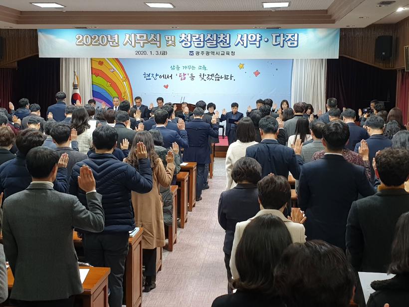 [°ø°£´º½º = ±è¼ö±Ù±âÀÚ] ±¤Áֽñ³À°Ã»(±³À°°¨ ÀåÈÖ±¹)Àº 3ÀÏ º»Ã» ´ë°´ç¿¡¼ ÀåÈÖ±¹ ±³À°°¨À» ºñ·ÔÇÑ Àü Á÷¿ø 170¿© ¸íÀÌ Âü¼®ÇÑ °¡¿îµ¥ ½Ã¹«½ÄÀ» °âÇÑ Ã»·Å½Çõ ´ÙÁüÀ¸·Î °æÀڳ⠻õÇØ¸¦ ½ÃÀÛÇÑ´Ù°í ¹àÇû´Ù.