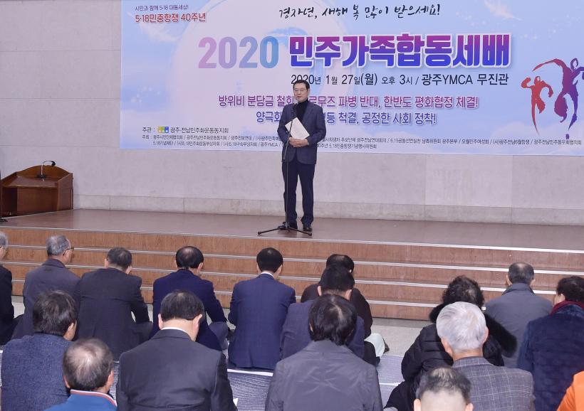 | À̿뼷 ±¤ÁÖ±¤¿ª½ÃÀåÀÌ ¼³ ¿¬ÈÞ ¸¶Áö¸· ³¯ÀÎ 27ÀÏ ¿ÀÈÄ µ¿±¸ ±Ý³²·Î ±¤ÁÖYMCA 2Ãþ ¹«Áø°ü¿¡¼ ¿¸° '2020 ¹ÎÁÖ°¡Á· ÇÕµ¿ ¼¼¹è'¿¡ Âü¼®ÇØ »õÇØ ´ö´ãÀ» Çϰí ÀÖ´Ù. |