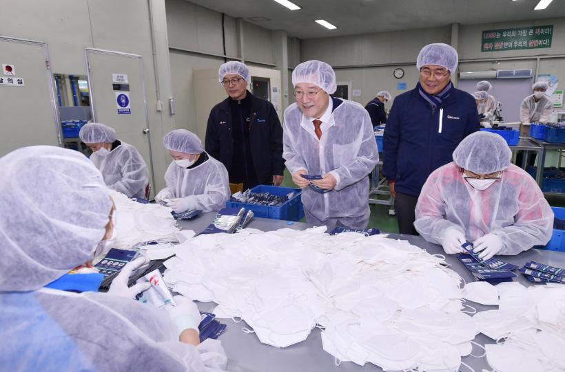 [°ø°£´º½º = ±è´ë¿µ±âÀÚ] ½ÅÁ¾ Äڷγª¹ÙÀÌ·¯½º ±¹³»¿Ü °¨¿°ÀÚ°¡ ±ÞÁõÇÏ´Â µî »óȲÀÌ ¾ÇÈµÇ¸é¼ ±¤ÁÖ±¤¿ª½Ã°¡ Àü¹æÀ§ ´ëÀÀ¿¡ ³ª¼°í ÀÖ´Â °¡¿îµ¥ À̿뼷 ±¤ÁÖ½ÃÀåÀÌ ¸¶½ºÅ© Á¦Á¶°øÀåÀ» ã¾Æ »ý»ê½ÇŸ¦ Á¡°ËÇÏ°í ¾ÈÀüÇÑ Á¦Ç° »ý»ê¿¡ ¸¸ÀüÀ» ±âÇØÁÙ °ÍÀ» ´çºÎÇß´Ù.