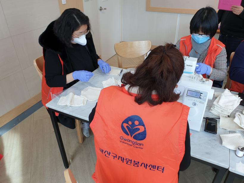 ¼¾ÅÍ´Â ÀÌ·¸°Ô ¸¶·ÃÇÑ ¸¶½ºÅ©¸¦ ±¤ÁÖ°øÇ×°ú ±¤ÁÖ¼ÛÁ¤¿ª¿¡¼ ¹æ¹®°´µé¿¡°Ô ³ª´²ÁÖ¸ç, °¨¿°º´ ¿¹¹æ ¼öÄ¢µµ ÇÔ²² È«º¸ÇÒ ¿¹Á¤ÀÌ´Ù. 6ÀϱîÁö Àç´É±âºÎÀÚµéÀº ¸¶½ºÅ© 150°³¸¦ Á¦ÀÛÇØ ³õÀº »óÅ´Ù.