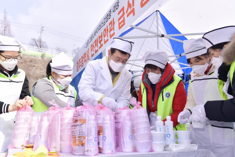 ÀÌ ½ÃÀåÀº À̳¯ ±¤Áֽà ¾ÈÀüº¸¾È°ü, ¾ÈÀü¸ð´ÏÅͺÀ»ç´Ü 20¿©¸í°ú ÇÔ²² ¼Ò°í±â ¹Ì¿ª±¹, »õ¿ìººÀ½, ÆÄ±èÄ¡, ±è µî ¾ÆÄ§ºÎÅÍ Á¤¼º²¯ ÁغñÇÑ Á¡½É½Ä»ç 62ÀκÐÀ» °Ý¸®µÈ ½Ã¹Î°ú ÀÇ·áÁø, °æÂû, °ü°èÀÚ¿¡°Ô ¹è½ÄÇÏ°í ´õ¿í Èû ³»ÁÙ °ÍÀ» ´çºÎÇß´Ù.