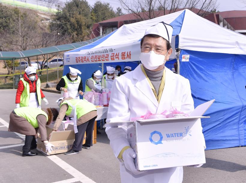 [°ø°£´º½º = ±è´ë¿µ±âÀÚ] À̿뼷 ±¤ÁÖ±¤¿ª½ÃÀåÀÌ ½ÅÁ¾ Äڷγª¹ÙÀÌ·¯½º °¨¿°ÁõÀ» ³ª´®°ú ¿¬´ëÀÇ ±¤ÁÖÁ¤½ÅÀ¸·Î ÇÔ²² ±Øº¹ÇÏÀÚ¸ç Áö¿ª °¢°èÀÇ ¿ÂÁ¤ÀÇ ¼Õ±æÀÌ À̾îÁö°í ÀÖ´Â Àӽà °Ý¸®½Ã¼³À» ã¾Æ ½Ã¹Î¿¡°Ô µû¶æÇÑ ¹ä ÇÑ ³¢¸¦ ´ëÁ¢ÇÏ°í °Ý·ÁÇß´Ù.