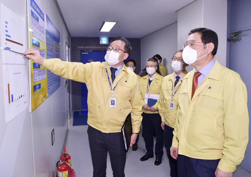 ƯÈ÷ ½ÅÁ¾ Äڷγª¹ÙÀÌ·¯½º °¨¿°ÁõÀ» °Ë»çÇÏ´Â »ý¹°¾ÈÀü 3µî±Þ ¹ÐÆó½ÇÇè½Ç(BL-3, Biosafety Laboratory-3)¿¡ Àüȸ¦ °É¾î °Ë»ç¸¦ ÁøÇàÇÏ´Â Á÷¿øÀ» °Ý·ÁÇÏ°í ¾ÈÀü¿¡ À¯ÀÇÇØ ÁÙ °ÍÀ» ´çºÎÇß´Ù.