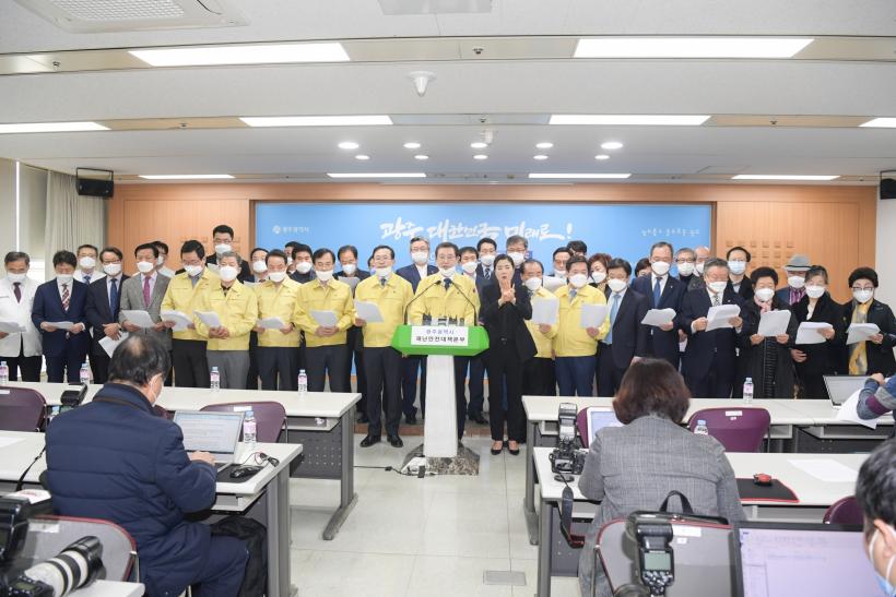 ±¤ÁÖ±¤¿ª½Ã¿Í 5°³ ±¸Ã», ½ÃÀÇȸ, ½Ã±³À°Ã», ¿À¿ù´Üü, º¸ÈÆ´Üü, Á¾±³°è, °æÁ¦°è, ½Ã¹Î»çȸ, ÀÇ·á°è µî °¢±Þ ±â°ü¡¤´ÜüÀåµéÀº 1ÀÏ ¿ÀÈÄ ±¤ÁÖ½Ãû ºê¸®Çη뿡¼ Ưº°´ãȹ®À» ¹ßÇ¥ÇÏ°í ¡°¿À´Ã ¶æ±íÀº 101ÁÖ³â 3¡¤1Àý ±â³äÀÏÀ» ÁîÀ½ÇÏ¿© ¿ì¸® ±¤ÁÖ°øµ¿Ã¼´Â ¿ì¸®¿¡°Ô ÁÖ¾îÁø ¿ª»çÀû ¼ÒÀÓÀ» ´ÙÇϰíÀÚ ÇÑ´Ù¡±¸é¼ À̰°ÀÌ ¹àÇû´Ù.