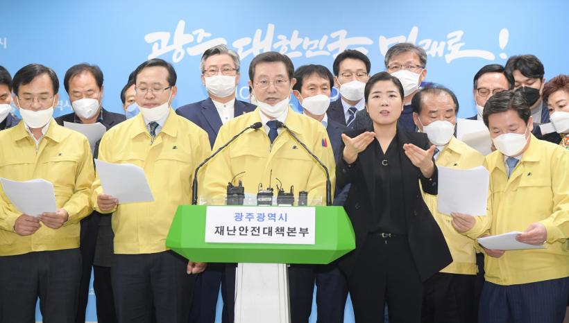 ¶Ç ¡°ÀÌ·± »óȲ¿¡¼ ±¤ÁֽùÎÀÇ »ý¸í°ú ¾ÈÀüÀ» Ã¥ÀÓÁ®¾ß ÇÒ ±¤ÁÖ°øµ¿Ã¼°¡ ´ë±¸ È®ÁøÀÚ¸¦ ¹Þ°Ú´Ù°í °áÁ¤ÇÑ °ÍÀº ¸Å¿ì ¾î·Á¿î °á´ÜÀ̾úÁö¸¸, ÀÇ·áÁøÀ» ºñ·ÔÇÑ ¸¹Àº ºÐµéÀÇ ÀǰßÀ» ¼ö·ÅÇÏ¸é¼ ÀÇÇâ ±¤ÁÖÀÇ ½Ã´ëÀû ¼Ò¸í°ú Ã¥ÀÓ¿¡ ´ëÇØ ½É»ç¼÷°íÇÑ ³¡¿¡ ÀÌ ±æÀÌ ±¤ÁÖ°¡ °¡¾ßÇÒ ±æÀ̰í, ±¤ÁÖ´Ù¿òÀ̶ó°í »ý°¢Çß´Ù¡±°í °á´ÜÀÇ ¹è°æÀ» ¹àÇû´Ù.