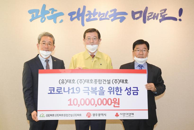 ¸ÕÀú ´ëÇѰǼ³Çùȸ ±¤ÁÖ½Ãȸ, ¢ßÅÂÈ£Á¾ÇհǼ³°úÀÇ ±âºÎ±Ý Àü´Þ½Ä¿¡¼ À̿뼷 ½ÃÀåÀº ±è¿µÁÖ ´ëÇѰǼ³Çùȸ ±¤ÁÖ½ÃȸÀå °â ¢ßÅÂÈ£Á¾ÇհǼ³ ´ëÇ¥ÀÌ»ç·ÎºÎÅÍ 2000¸¸¿ø(´ëÇѰǼ³Çùȸ 1000¸¸¿ø, ¢ßÅÂÈ£Á¾ÇհǼ³ 1000¸¸¿ø)ÀÇ ±âºÎ±ÝÀ» Àü´Þ¹Þ¾Ò´Ù.
