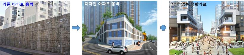 ´õºÒ¾î º¸ÇàÀÚ¿¡°Ô À§¾Ð°¨À» Á¶¼ºÇÏ´Â 3m ÀÌ»ó ¿Ëº®Àº µðÀÚÀÎ °èȹÀ» ¼ö¸³ÇØ µðÀÚÀÎ ¿Ëº® ¶Ç´Â °è´Ü½Ä ¿Ëº®(Ȱè) µîÀ¸·Î Á¶¼ºÇÑ´Ù.
