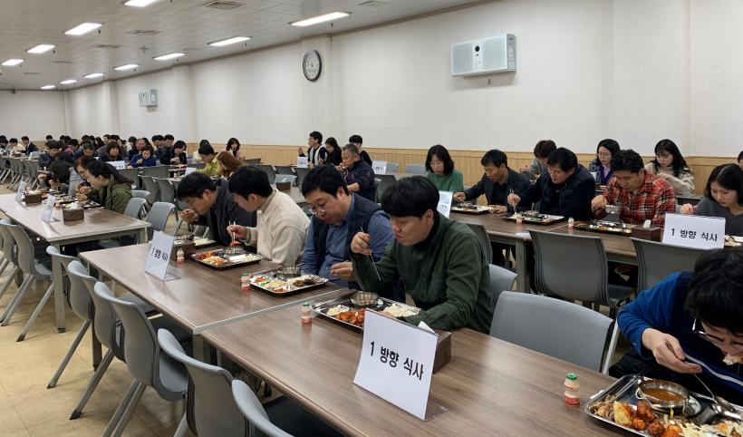 ±¤»ê±¸ÀÇ À̹ø Á¶Ä¡´Â ºñ¸»¿¡ ÀÇÇÑ Äڷγª19 ÀüÆÄ¸¦ ¸·±â À§ÇÑ °ÍÀÌ´Ù. ŹÀÚ¿¡ ¾É¾Æ ¾ó±¼À» ¸¶ÁÖº¸¸ç Á¡½É ½Ä»çÇÏ´ø ±âÁ¸ ±¸³»½Ä´ç ¿î¿µ ¹æ½Ä¿¡¼ ¹þ¾î³ª, ÀÌ¿ëÀÚ ¸ðµÎ°¡ ŹÀÚÀÇ ÇÑÂÊ ¹æÇâ¿¡¼¸¸ ¹äÀ» ¸Ôµµ·Ï ¸¸µé¾î ÀÏÁ¤ °Å¸®¸¦ À¯ÁöÇϵµ·Ï ¸¸µç´Ù´Â ³»¿ëÀÌ´Ù.
