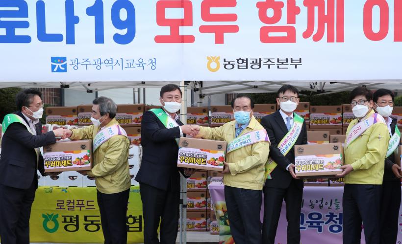 [°ø°£´º½º = ±è¼ö±Ù±âÀÚ] ±¤ÁÖ±¤¿ª½Ã±³À°Ã»(±³À°°¨ ÀåÈÖ±¹) ±³Á÷¿øµéÀÌ Äڷγª19·Î (Çб³ ±Þ½Ä µîÀÌ ÁøÇàµÇÁö ¾Ê¾Æ) ÆÇ·Î°¡ ¸·Çô À§±â¸¦ °Þ°í ÀÖ´Â ³ó°¡¸¦ µ½±â À§ÇØ 3¿ù27ÀϺÎÅÍ 4¿ù5ÀϱîÁö ´ë±Ô¸ð ³óÃà»ê¹° ±¸¸Å¿¡ µé¾î°¬´Ù.