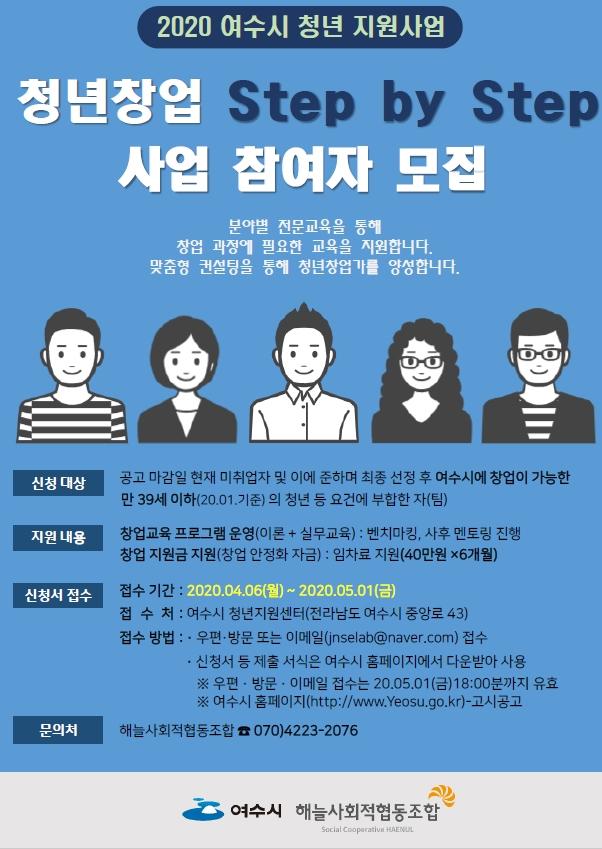 [°ø°£´º½º = ±è´ë¿µ±âÀÚ] ¿©¼ö½Ã(½ÃÀå ±Ç¿ÀºÀ)°¡ Áö¿ª¿¡¼ â¾÷À» ÁغñÇϰí Àִ û³âµéÀ» ´ë»óÀ¸·Î ¡®Ã»³â â¾÷ ½ºÅÜ ¹ÙÀÌ ½ºÅÜ(Step By Step)¡¯ »ç¾÷ Âü¿©ÀÚ¸¦ ¸ðÁýÇÑ´Ù.