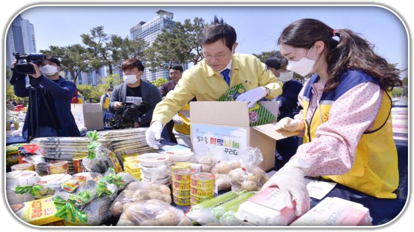 ºû°íÀ» Èñ¸Á³ª´® ²Ù·¯¹Ì´Â Äڷγª19 À§±â±Øº¹¿¡ ½á´Þ¶ó´Â ½Ã¹ÎµéÀÇ ±âºÎ±ÝǰÀ» Ȱ¿ëÇØ ÀüÅë½ÃÀå »óǰ°ú Áö¿ª³ó°¡ »ý»êǰÀ» ´ã¾Æ ¼Ò¿Ü°èÃþ¿¡°Ô Áö¿øÇÏ´Â ½Äǰ ¼¼Æ®¸¦ ¸»ÇÑ´Ù.