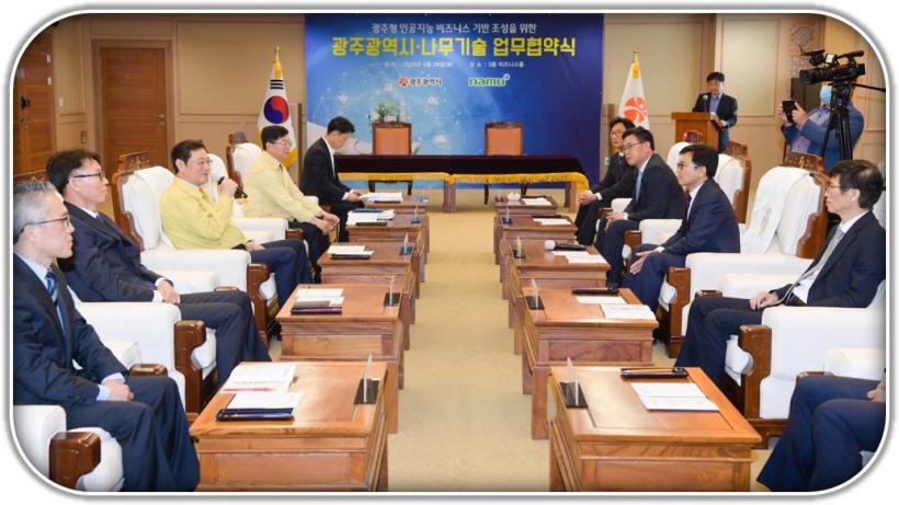 [°ø°£´º½º = ±è´ë¿µ±âÀÚ] ±¤ÁÖ±¤¿ª½Ã´Â ³ª¹«±â¼ú¢ß¿Í ±¤ÁÖÇü ÀΰøÁö´É ºñÁî´Ï½º ±â¹Ý Á¶¼ºÀ» À§ÇÑ ¾÷¹«Çù¾àÀ» ü°áÇÏ°í ±¤ÁÖ¿¡ ¡®ÀΰøÁö´É ±â¹Ý Ŭ¶ó¿ìµåÄÄÇ»ÆÃ ¿¬±¸°³¹ß¼¾ÅÍ¡¯ ¼³¸³À» ÃßÁøÇÏ´Â µî ¡®ÀΰøÁö´É Á߽ɵµ½Ã ±¤ÁÖ¡¯ °Ç¼³¿¡ Àû±Ø Çù·ÂŰ·Î Çß´Ù.