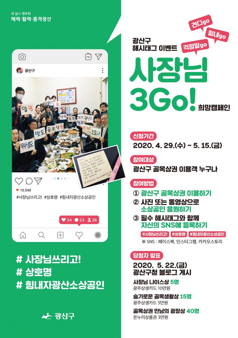 [°ø°£´º½º = ±è¿îö±âÀÚ] ±¤»ê±¸(±¸Ã»Àå ±è»ïÈ£)°¡ Äڷγª19 Àå±âÈ·Î °æ¿µ¿¡ ¾î·Á¿òÀ» °Þ´Â °ñ¸ñ»ó±Ç ¼Ò»ó°øÀÎÀ» ÀÀ¿øÇϰí, ¾ó¾îºÙÀº ¼Òºñ½É¸®¸¦ ÁøÀÛÇϱâ À§ÇØ ¿À´Â 15ÀϱîÁö ¡®»çÀå´Ô, 3Go! Èñ¸Á Ä·ÆäÀΡ¯À» ÃßÁøÇÑ´Ù.