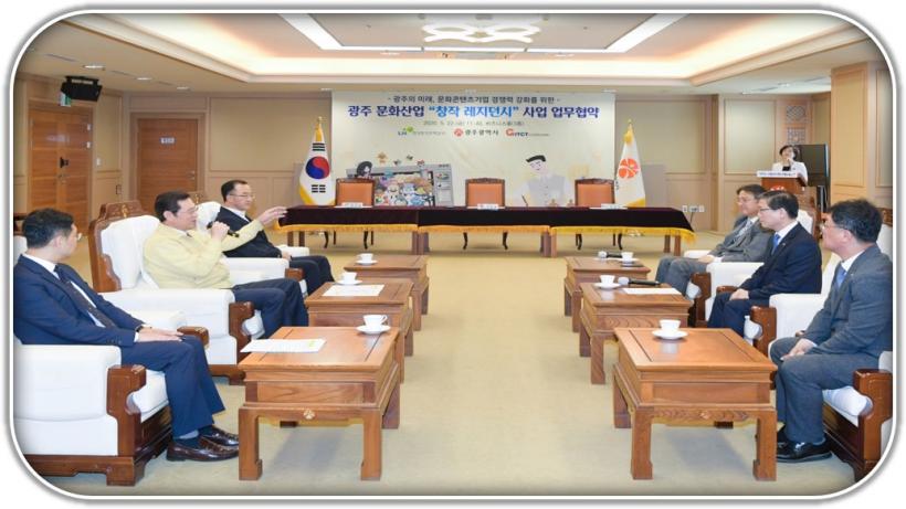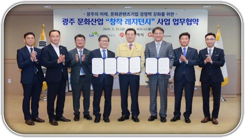 ±¤ÁÖ±¤¿ª½Ã´Â Çѱ¹ÅäÁöÁÖÅðø»ç, ±¤ÁÖÁ¤º¸¹®È»ê¾÷ÁøÈï¿ø°ú Áö¿ª Àü·«»ê¾÷ÀÎ ¹®ÈÄÜÅÙÃ÷»ê¾÷ Á¾»çÀÚÀÇ ¾ÈÁ¤ÀûÀÎ ÁÖ°ÅÁö¿øÀ» À§ÇØ Ã¢ÀÛ ·¹Áö´ø½Ã»ç¾÷¿¡ °øµ¿ ³ë·ÂÇϱâ·Î ÇÕÀÇÇϰí 22ÀÏ ¾÷¹«Çù¾àÀ» ü°áÇß´Ù.