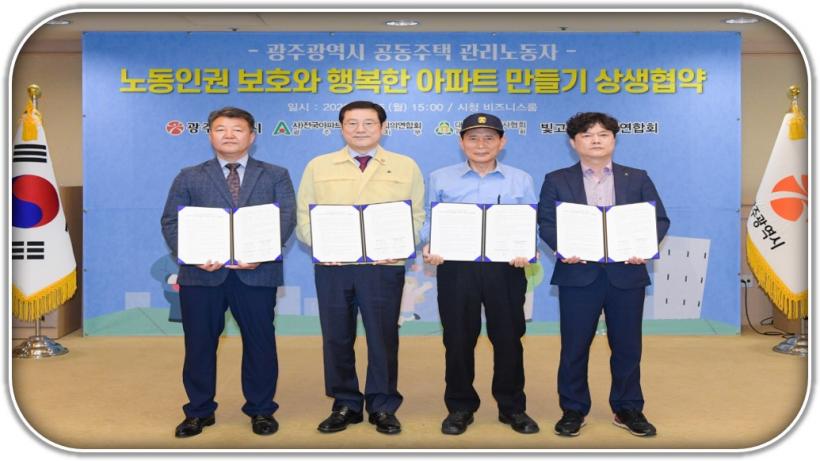 À̿뼷 ±¤ÁÖ±¤¿ª½ÃÀåÀÌ 25ÀÏ ¿ÀÈÄ ½Ãû 3Ãþ ºñÁî´Ï½º·ë¿¡¼ ¿¸° (»ç)Àü±¹¾ÆÆÄÆ®ÀÔÁÖÀÚ´ëǥȸÀÇ¿¬ÇÕȸ ±¤ÁÖÁöºÎ, ´ëÇÑÁÖÅðü¸®»çÇùȸ ±¤ÁÖ½Ãȸ, ºû°íÀ»°æºñ¿ø¿¬ÇÕȸ¿ÍÀÇ ¡®°øµ¿ÁÖÅà °ü¸®³ëµ¿ÀÚ ³ëµ¿À뱂 º¸È£¿Í ÇູÇÑ ¾ÆÆÄÆ® ¸¸µé±â À§ÇÑ »ó»ýÇù¾à½Ä¡¯¿¡ Âü¼®ÇØ Çù¾à¼ ¼¸í ÈÄ ±â³äÃÔ¿µÀ» Çϰí ÀÖ´Ù. ¿ÞÂʺÎÅÍ ÀÌ»ó¿î ´ëÇÑÁÖÅðü¸®»çÇùȸ ±¤ÁÖ½ÃȸÀå, À̿뼷 ±¤ÁÖ±¤¿ª½ÃÀå, ¹®ÇÑ±Ô ºû°íÀ»°æºñ¿ø¿¬ÇÕȸ ´ëÇ¥, ¼»ó±â Àü±¹¾ÆÆÄÆ®ÀÔÁÖÀÚ´ëǥȸÀÇ¿¬ÇÕȸ ±¤ÁÖ½ÃÁöºÎÀå.