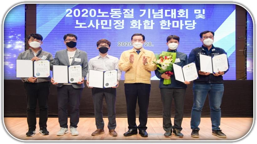 ÇÑÆí °¢°è Àλç¿Í ³ëµ¿ÀÚ µîÀÌ Âü¼®ÇÑ °¡¿îµ¥ ¿¸° À̳¯ ³ëµ¿ÀÚÀÇ ³¯ ±â³äÇà»ç¿¡¼´Â ³ë»çÈÇÕ°ú ³ë»ç»ó»ý Çâ»ó¿¡ ±â¿©ÇÑ ³ëµ¿ÀÚ 5¸íÀÌ ±¤ÁÖ±¤¿ª½ÃÀå ǥâÀ» ¼ö»óÇÏ´Â µî ÃÑ 10¸íÀÇ ³ëµ¿ÀÚ°¡ ±¤ÁÖ±¤¿ª½ÃÀå»ó°ú ±â°üÀå ǥâÀ» ¹Þ¾Ò´Ù.