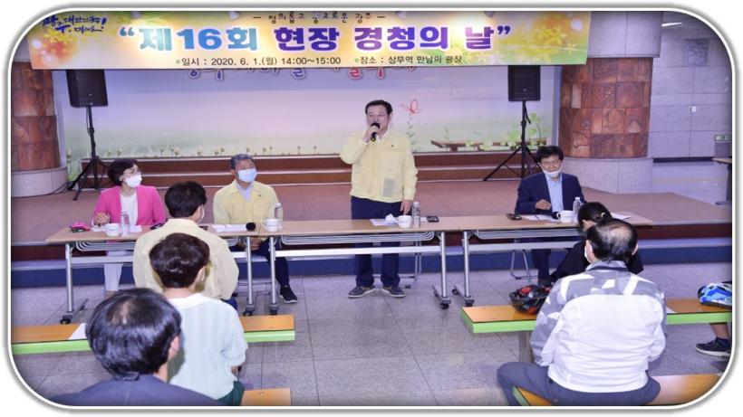 À̹ø ¡®ÇöÀå °æÃ»ÀÇ ³¯¡¯Àº À̿뼷 ±¤ÁÖ½ÃÀå, ¼´ë¼® ¼±¸Ã»Àå, Á¤¼ø¾Ö ½ÃÀÇ¿ø, °±â¼®¡¤°ÀÎÅ᤿À±¤±³ ¼±¸ÀÇ¿ø, ½Ã¹Î±ÇÀÍÀ§¿ø, ÀÚÀü°ÅƯÀ§ °ü°èÀÚ µîÀÌ Âü¿©ÇÑ °¡¿îµ¥ ÃÖ¿µÅ ½Ã¹Î±ÇÀÍÀ§¿øÀåÀÇ »çȸ·Î ÁøÇàµÆ´Ù.