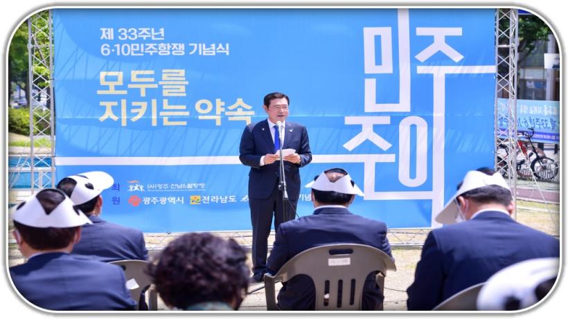 [°ø°£´º½º = ±è´ë¿µ±âÀÚ] À̿뼷 ±¤ÁÖ±¤¿ª½ÃÀåÀº 10ÀÏ ±¤ÁÖÇâ±³ ¾Õ 6¿ùÇ×Àï Ç¥¼®ºñ Àܵ𸶴翡¼ ¿¸° Á¦33ÁÖ³â 6¡¤10¹ÎÁÖÇ×Àï ±â³ä½Ä¿¡ Âü¼®ÇØ ÁøÁ¤ÇÑ ÀÚÀ¯¿Í ¹ÎÁÖÁÖÀǸ¦ À§ÇØ ºÎÁ¤°ú ºÒÀÇ¿¡ ¸Â¼± ¹ÚÁ¾Ã¶, ÀÌÇÑ¿ ¿»ç µî ¹ÎÁÖ¿µ·ÉµéÀÇ °í±ÍÇÑ Èñ»ýÀ» Ã߸ðÇÏ°í °æÀǸ¦ Ç¥Çß´Ù.