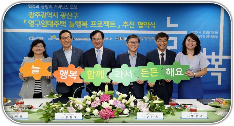 ±¤»ê±¸´Â ¿µ±¸ÀÓ´ë¾ÆÆÄÆ® ÁÖ¹ÎÀÇ »îÀÇ ÁúÀ» °³¼±ÇÏ´Â Á¾ÇÕ º¹Áö °èȹÀÎ ´ÃÇູ ÇÁ·ÎÁ§Æ®¸¦ À§ÇØ 6¿ù Çѱ¹ÅäÁöÁÖÅðø»ç(LH), Çѱ¹³ó¼ö»ê½ÄǰÀ¯Åë°ø»ç(aT), ÁÖÅðü¸®°ø´Ü, CSR Impact, ±¤ÁÖÀǷẹÁö»çȸÇùµ¿Á¶ÇÕÃßÁøÀ§¿øÈ¸¿Í ¾÷¹«Çù¾àÀ» ¸Î°í, º¹Áö °Å¹ö³Í½º¸¦ ±¸ÃàÇß´Ù.