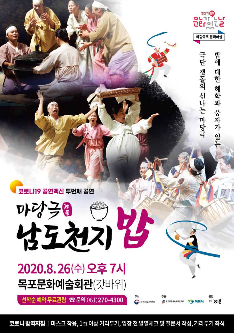 [°ø°£´º½º = ±è¿ëÁø±âÀÚ] ¸ñÆ÷½Ã(½ÃÀå ±èÁ¾½Ä)´Â 8¿ù ¹®È°¡ ÀÖ´Â ³¯À» ¸Â¾Æ ¿À´Â 26ÀÏ ¿ÀÈÄ 19½Ã ¸ñÆ÷¹®È¿¹¼úȸ°ü¿¡¼ ±Ø´Ü °¹µ¹ÀÇ¡®¸¶´ç±Ø ³²µµÃµÁö¹ä¡¯À» ¹«·á °ø¿¬ÇÑ´Ù.