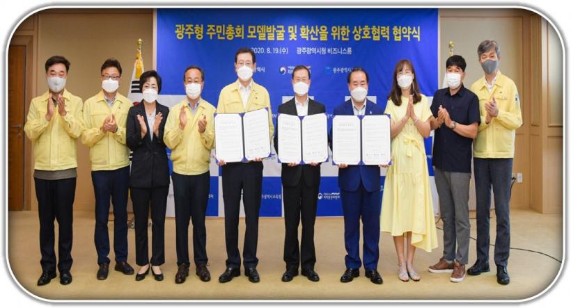 [°ø°£´º½º = ±è´ë¿µ±âÀÚ] ±¤ÁÖ±¤¿ª½Ã´Â 19ÀÏ ¿ÀÀü ½Ãû¿¡¼ À̿뼷 ½ÃÀå, ÀåÈÖ±¹ ½Ã±³À°°¨, ±è¼øÀº ´ëÅë·É¼Ò¼Ó ÀÚÄ¡ºÐ±ÇÀ§¿øÈ¸ À§¿øÀå 3°³ ±â°ü ´ëÇ¥°¡ Âü¼®ÇÑ °¡¿îµ¥ ±¤ÁÖÇü ÁÖ¹ÎÃÑȸ ¸ðµ¨À» ¹ß±¼ÇØ Àü±¹¿¡ È®»êÇÏ´Â µ¥ »óÈ£ Çù·ÂÇÏ´Â Çù¾àÀ» ü°áÇß´Ù.