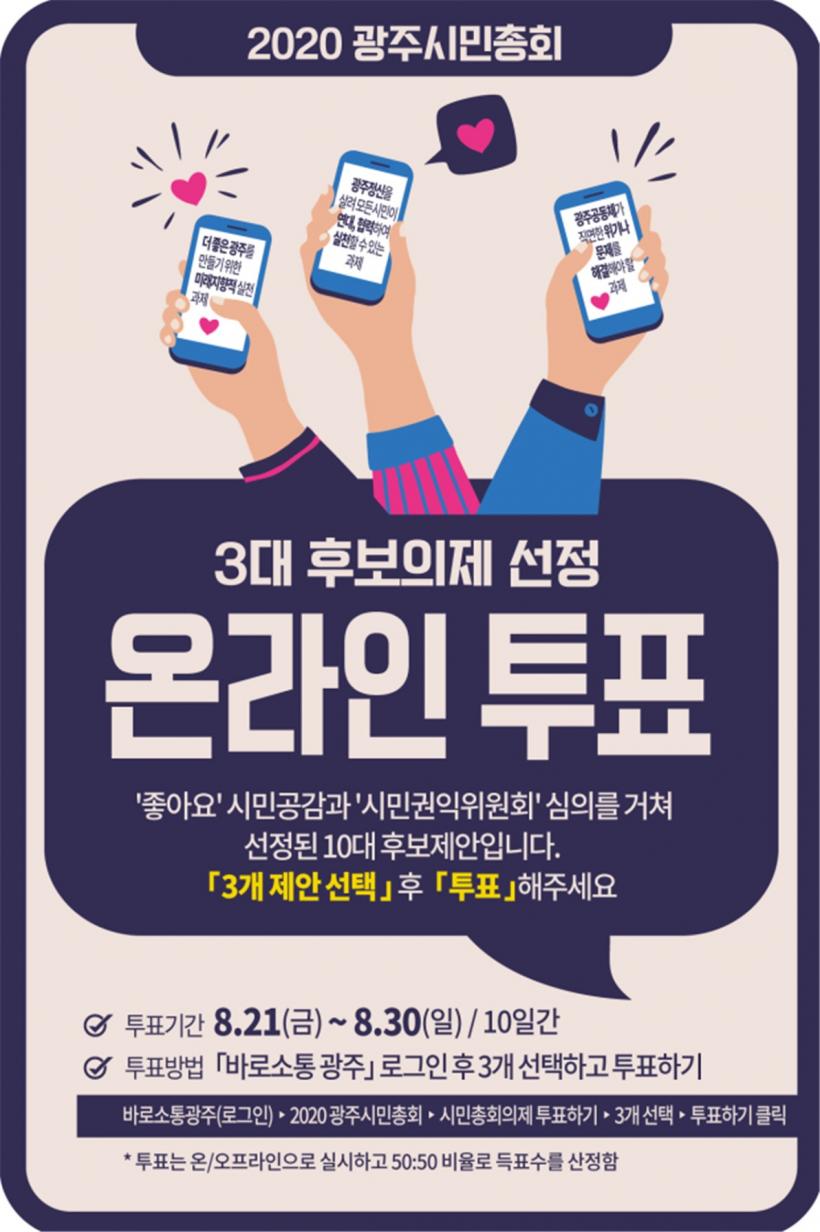 [°ø°£´º½º = ±è´ë¿µ±âÀÚ] ±¤ÁÖ±¤¿ª½Ã´Â ¡®2020 ±¤ÁֽùÎÃÑȸ¡¯¿¡ »óÁ¤ÇÒ 3´ë Èĺ¸ÀÇÁ¦¸¦ Á¤ÇÏ´Â ½Ã¹ÎÅõÇ¥¸¦ ¿Â¡¤¿ÀÇÁ¶óÀÎÀ¸·Î ½Ç½ÃÇÑ´Ù.