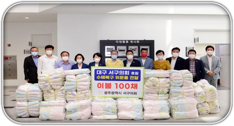 [°ø°£´º½º = ±è´ë¿µ±âÀÚ] ±¤ÁÖ¼±¸ÀÇȸ(ÀÇÀå ±èÅ¿µ)°¡ 21ÀÏ ´ë±¸¼±¸ÀÇȸ(ÀÇÀå ±èÁ¾·Ï)·ÎºÎÅÍ 100¿©Ã¤ÀÇ À̺ÒÀ» ¹Þ¾Æ ħ¼öÇÇÇØ·Î ¾ÆÇÄÀ» °Þ°í ÀÖ´Â Áֹε鿡°Ô Àü´ÞÇß´Ù°í ¹àÇû´Ù.
