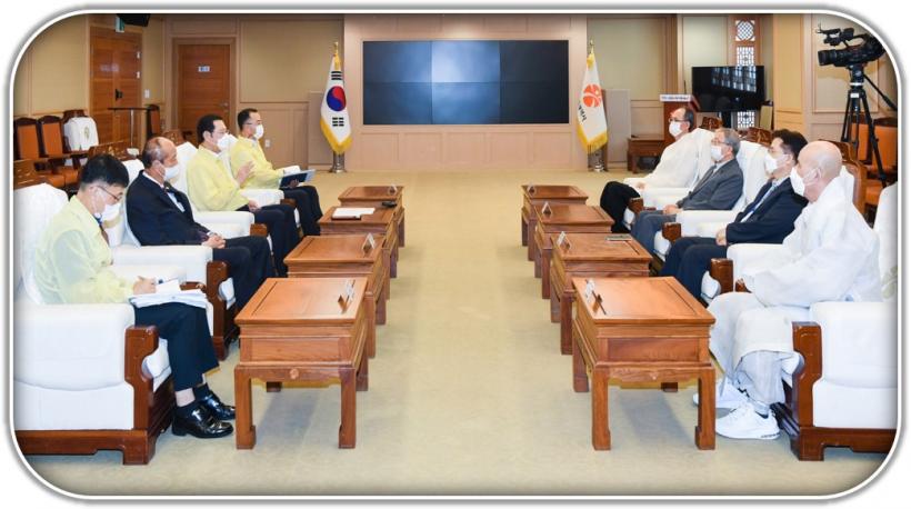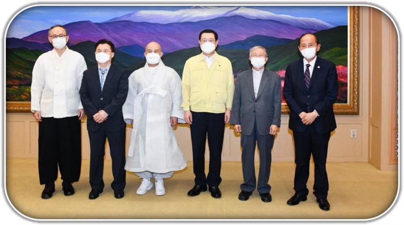 [°ø°£´º½º = ±è´ë¿µ±âÀÚ] À̿뼷 ±¤ÁÖ±¤¿ª½ÃÀåÀÌ Äڷγª19 Áö¿ª°¨¿° È®»êÀ» ¸·±â À§ÇØ 5´ë Á¾±³´Üü ´ëÇ¥µé°ú ±ä±Þ °£´ãȸ¸¦ °®°í Àû±ØÀûÀÎ ÇùÁ¶¸¦ ¿äûÇß´Ù. 5´ë Á¾´Üµµ Á¾±³ Áýȸ‧¸ðÀÓ ÀÚÁ¦ µîÀ» ÅëÇØ ±¤ÁÖ°øµ¿Ã¼ ¾ÈÀüÀ» Áö۴µ¥ ¸ðµç ¿ª·®À» °áÁýÇÏ°Ú´Ù°í ¾à¼ÓÇß´Ù.