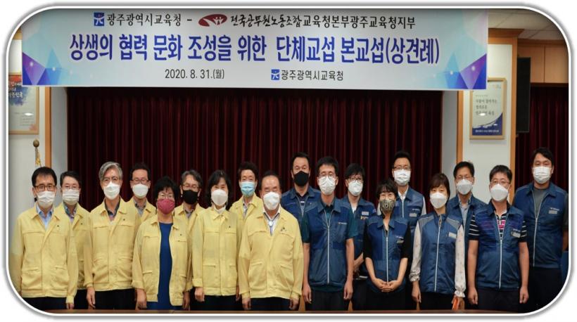 ±¤Áֽñ³À°Ã»°ú °ø¹«¿ø³ëÁ¶´Â ÀÌ ÀÚ¸®¿¡¼ ±¤ÁÖ±³À°ÀÇ Çö¾È ¹®Á¦ ÇØ°á ¹× ÇູÇÑ ±¤ÁÖ±³À° °øµ¿Ã¼ ½ÇÇöÀ» À§ÇØ »óÈ£ ¼ÒÅë°ú Çù·ÂÀ» ±â¹ÝÀ¸·Î Àû±Ø Çù·ÂÇϱâ·Î Çß´Ù.±¤Áֽñ³À°Ã»ÀÌ 6³â ¸¸¿¡ ÁßȸÀǽǿ¡¼ ±è°Ç¿À ±¤ÁÖ±³À°Ã»ÁöºÎÀåÀ» Æ÷ÇÔÇÑ 18¸í(±³¼·´ç»çÀÚ °¢ 9¸í)ÀÌ Âü¼®ÇÑ °¡¿îµ¥ Àü±¹°ø¹«¿ø³ëµ¿Á¶ÇÕ±³À°Ã»º»ºÎ±¤ÁÖ±³À°Ã»ÁöºÎ(ÀÌÇÏ °ø¹«¿ø³ëÁ¶)¿Í ´Üü±³¼· º»±³¼·(»ó°ß·Ê)À» Áö³ 8¿ù31ÀÏ ½Ç½ÃÇß´Ù.