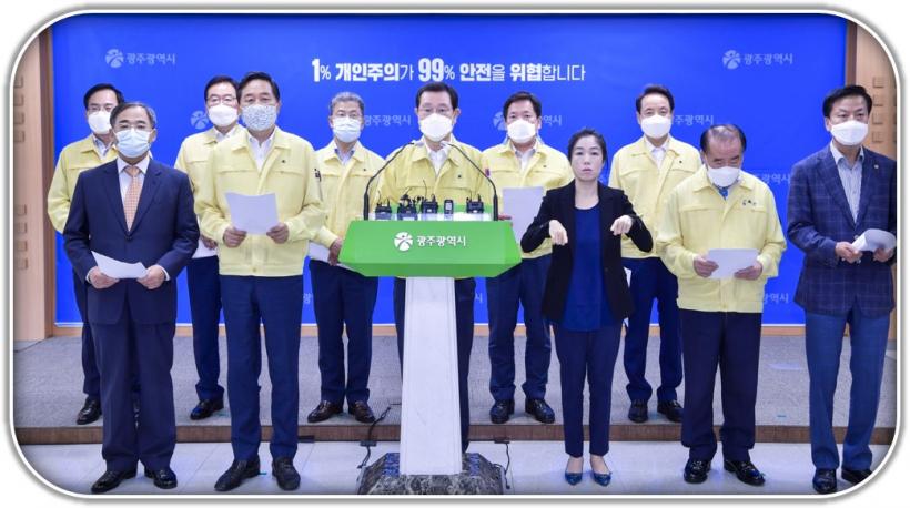 À̿뼷 ±¤ÁÖ±¤¿ª½ÃÀåÀº À̳¯ ¿ÀÈÄ ¿Â¶óÀÎ ºê¸®ÇÎÀ» ÅëÇØ ¹Î°ü°øµ¿´ëÃ¥À§ ȸÀÇ °á°ú¸¦ ¹ßÇ¥ÇÏ¸é¼ ¡°Áö¿ª°¨¿° È®ÁøÀÚ°¡ ±ÞÁõÇϱ⠽ÃÀÛÇÑ 8¿ù27ÀÏ 3´Ü°è¿¡ ÁØÇÏ´Â »çȸÀû °Å¸®µÎ±â ÇàÁ¤¸í·ÉÀ» ¹ß·ÉÇÑ ÀÌÈÄ Æø¹ßÀû Áö¿ª°¨¿° È®»êÀº Â÷´ÜÇßÁö¸¸ ±â´ë¸¸Å È®ÁøÀÚ°¡ ÁÙ¾îµéÁö ¾Ê°í ÀÖ´Ù¡±¸ç ¡°À̹ø¿¡ Äڷγª19 °¨¿°°í¸®¸¦ È®½ÇÇÏ°Ô ²÷¾î³»±â À§ÇØ ÁØ3´Ü°è Á¶Ä¡¸¦ ¿¬ÀåÇÏ°Ô µÆ´Ù¡±°í ¹è°æÀ» ¼³¸íÇß´Ù.