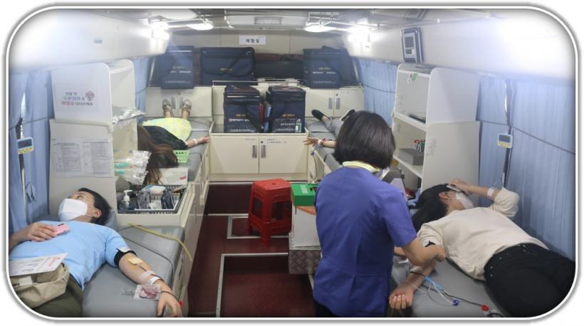 ¡®»ç¶ûÀÇ ÇåÇ÷ ¿îµ¿¡¯Àº Äڷγª19 È®»ê ¹× Àå±âÈ¿¡ µû¸¥ Ç÷¾× ¼ö±Þ ¹®Á¦Á¡À» ±Øº¹Çϱâ À§ÇØ Á÷¿øµéÀÇ ÀÚ¹ßÀûÀÎ Âü¿©·Î ÁøÇàµÆ´Ù. ÀüÇ÷ÀÇ °æ¿ì 1Àδç 15ºÐ Á¤µµ ½Ã°£ÀÌ ¼Ò¿äµÆ°í, ÇåÇ÷ Âü¿© Á÷¿øµéÀº ÇåÇ÷ ÇÏ·ç Àü ¸ö »óÅ À¯Áö¸¦ À§ÇØ ÃæºÐÇÑ ¼÷¸éÀ» ÃëÇÑ ÈÄ ³ª´® Á¤½ÅÀ» ¸ö¼Ò ½ÇõÇß´Ù.