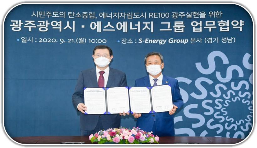±¤ÁÖ½Ã¿Í S-Energy±×·ìÀº ¿¡³ÊÁöÀÚ¸³ 2045 ź¼ÒÁ߸³ ¿¡³ÊÁöÀÚ¸³µµ½Ã RE100 ±¤ÁÖ ½ÇÇöÀ» ÅëÇÑ ¿¡³ÊÁö½Å»ê¾÷ À°¼º°ú ¿¡³ÊÁö »ê¾÷ °æÀï·Â °È¿¡ À̹ÙÁöÇÒ °ÍÀ¸·Î ±â´ëµÈ´Ù.