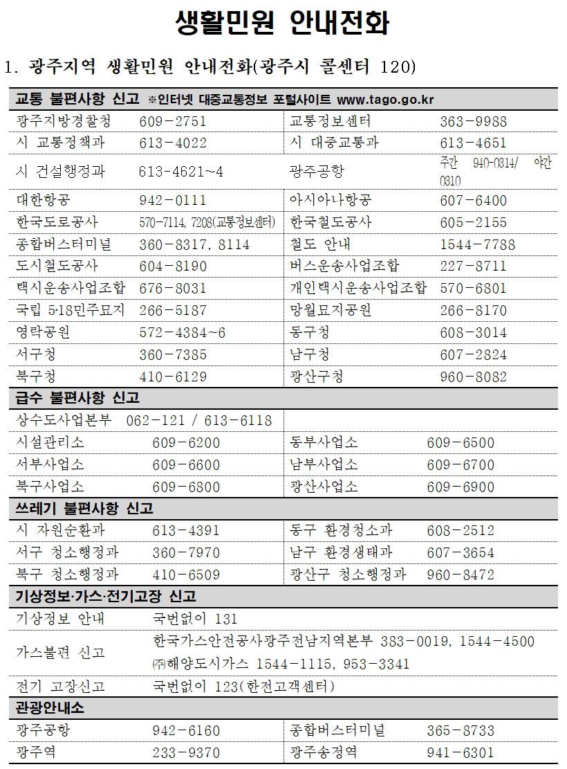 ±âŸ ºÒÆí»çÇ×Àº ±¤Áֽà 120Äݼ¾ÅÍ¿Í ´çÁ÷½Ç(062-613-5500~2)·Î ¹®ÀÇÇϸé ÀÚ¼¼È÷ ¾È³»¹ÞÀ» ¼ö ÀÖ´Ù.