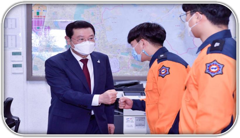 [°ø°£´º½º = ±è´ë¿µ±âÀÚ] À̿뼷 ±¤ÁÖ±¤¿ª½ÃÀåÀº Ãß¼®¿¬ÈÞ ¸¶Áö¸· ³¯ÀÎ 4ÀÏ ¿ÀÈÄ »ó¹«Áö±¸´ë¿Í ºÏºÎ¼Ò¹æ¼¸¦ ¹æ¹®ÇØ Ãß¼® ¿¬ÈÞ¿¡µµ Àϼ± ÇöÀå¿¡¼ ½Ã¹ÎµéÀÇ ¾ÈÀüÀ» À§ÇØ ±Ù¹«Çϰí ÀÖ´Â °æÂû°ü°ú ¼Ò¹æ°üµéÀÇ ³ë°í¸¦ À§·ÎÇÏ°í °Ý·ÁÇß´Ù.