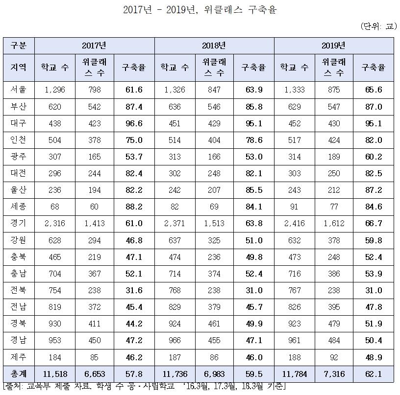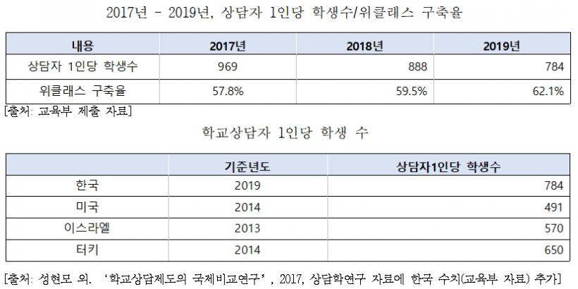 À§Å¬·¡½º ±¸ÃàÀ²Àº ¸Å³â ¼ÒÆø Áõ°¡ÇØ 2019³â ±âÁØ 62.1%¿´´Ù. ¾à 38%ÀÇ Çб³¿¡´Â À§Å¬·¡½º°¡ ¾ø´Â °ÍÀÌ´Ù. »ó´ãÀÚ 1Àδç Çлý ¼öµµ ¸Å³â °¨¼ÒÇØ ¿ÔÁö¸¸ 2019³â ±âÁØ 784¸íÀ¸·Î 2014³â ±âÁØ ¹Ì±¹ 491¸í¿¡ Å©°Ô ¸ø ¹ÌÃÄ »ó´ãÀÚÀÇ »ó´ã ¹× ÇàÁ¤ ¾÷¹« ºÎ´ãÀÌ °úÁßÇÑ °ÍÀ¸·Î µå·¯³µ´Ù.