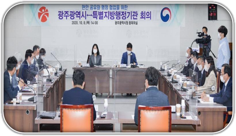 ȸÀÇ´Â ¿ÃÇØ ±¤ÁÖ½Ã¿Í Æ¯º°Áö¹æÇàÁ¤±â°üÀÌ °øµ¿À¸·Î ÃßÁøÇØ ¿Â Çù¾÷°úÁ¦ ÃßÁø»óȲÀ» Á¡°ËÇϰí ÇâÈÄ ±â°ü °£ Çö¾È¿¡ ´ëÇØ »óÈ£ ÀǰßÀ» ±³È¯ÇÏ´Â ¼ø¼·Î ÁøÇàµÆ´Ù.