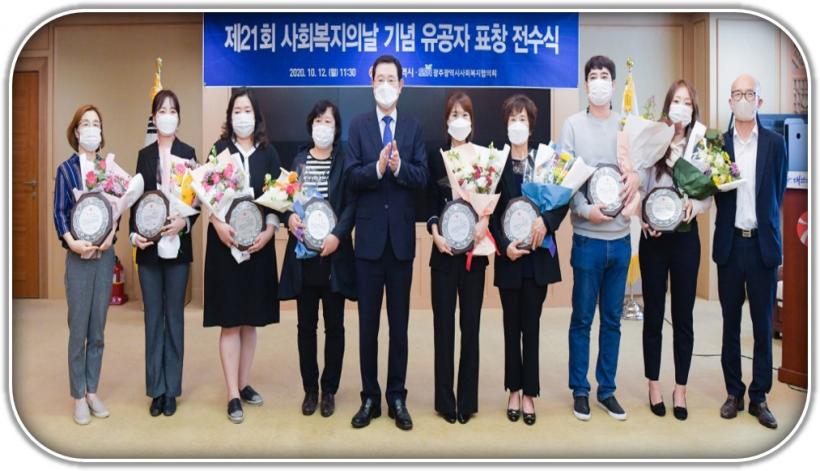 [°ø°£´º½º = ±è´ë¿µ±âÀÚ] ±¤ÁÖ±¤¿ª½Ã¿Í ±¤ÁÖ»çȸº¹ÁöÇùÀÇȸ´Â 12ÀÏ ¿ÀÀü ½Ãû ºñÁî´Ï½º·ë¿¡¼ ¡®Á¦21ȸ »çȸº¹ÁöÀÇ ³¯¡¯À» ±â³äÇØ ±×µ¿¾È »çȸº¹Áö ÃÖÀϼ±¿¡¼ Çå½ÅÇÑ À¯°øÀÚ 16¸í¿¡°Ô ±¤ÁÖ½ÃÀå ǥâÆÐ¸¦ ¼ö¿©Çß´Ù.