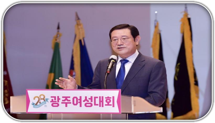 | À̿뼷 ±¤ÁÖ±¤¿ª½ÃÀåÀÌ 15ÀÏ ¿ÀÈÄ ½Ãû ´ëȸÀǽǿ¡¼ ¿¸° Á¦28ȸ ±¤ÁÖ¿©¼º´ëȸ¿¡ Âü¼®ÇØ °Ý·Á»ç¸¦ Çϰí ÀÖ´Ù. |